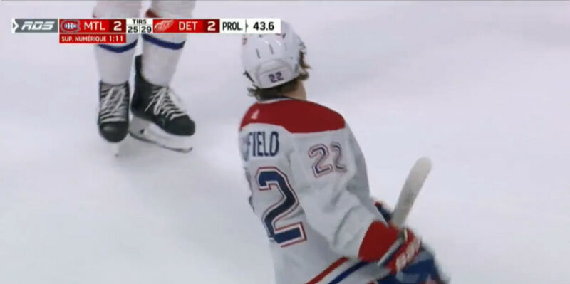 The #CH wins in overtime in Detroit. Already a third overtime goal for Cole Caufield this season.