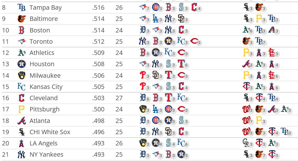 The Red Sox? Guardians, Diamondbacks, A's, Yankees, A's, Rays, Blue Jays and Tigers. As for the Blue Jays, it'll be the Reds, Yankees, Astros, Orioles, Rays, Royals, Red Sox and Rays.