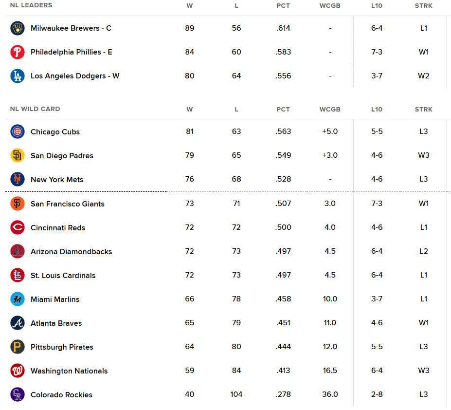 Note that yesterday, the Padres also won and are still one game away from the top of the division. The Giants also won, as did the Phillies, who faced the Mets. Aaron Nola did well against New York.