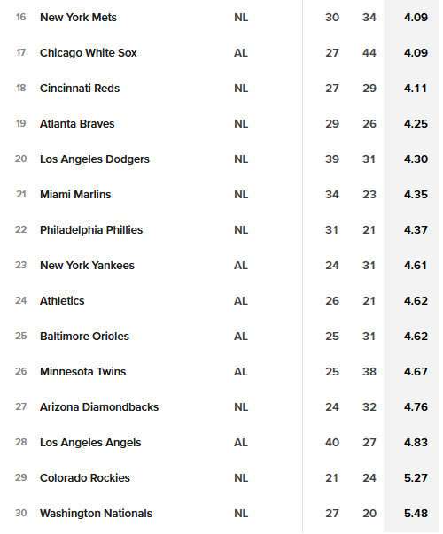In fact, it's quite symptomatic of the state of the bullpen in general. Why is that? Because since the trade deadline, the bullpen has had an average of 5.71. That's the worst in the league.