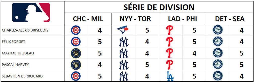 And just as we did for the Wild Card Series, Passion MLB's columnists took a look at the upcoming duels. Here are the results: