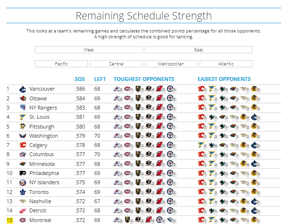 In a recent piece for The Athletic, Dom Luszczyszyn – taking into account the strength of each club's schedule – puts the chances of the Habs making the playoffs at… 55%.