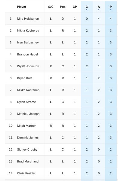 If I told you after fifteen games that Sidney Crosby was going to be the NHL's top scorer, what would you say?