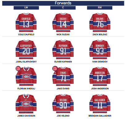 Nick Suzuki, Oliver Kapanen, Jake Evans and Joe Veleno are the Canadiens' four current center players.