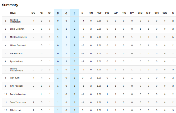 Blake Coleman scored his team's fifth, and in fine style at that. He now has 300 career points in the National Hockey League: