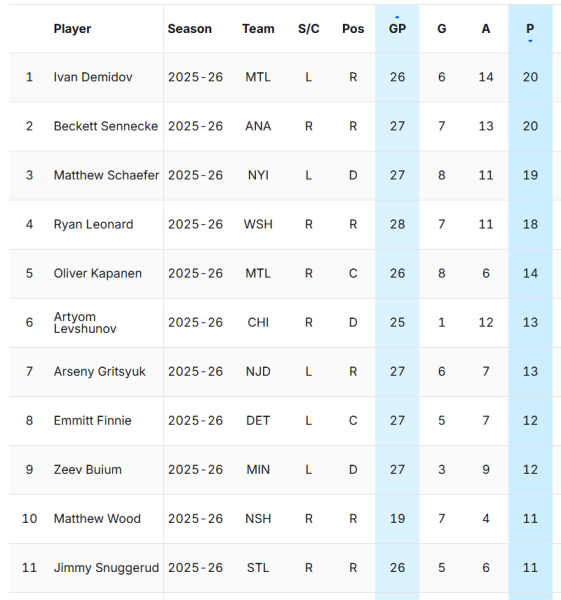 The European must be feeling confident. Kapanen has Ivan Demidov (who leads the rookies in points) producing in addition to himself leading the rookies in goals. Kapanen has eight.