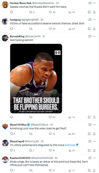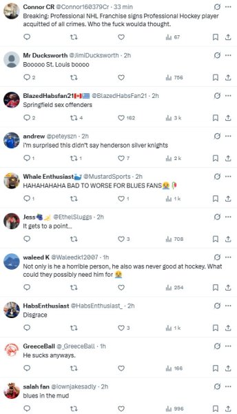 Because… it's not exactly glorious. I've gone through some of them and you can see how badly the news is going over at the board. It's mainly the Blues organization that's being criticized for its decision (and that's what happened with the other players who signed in North America too.