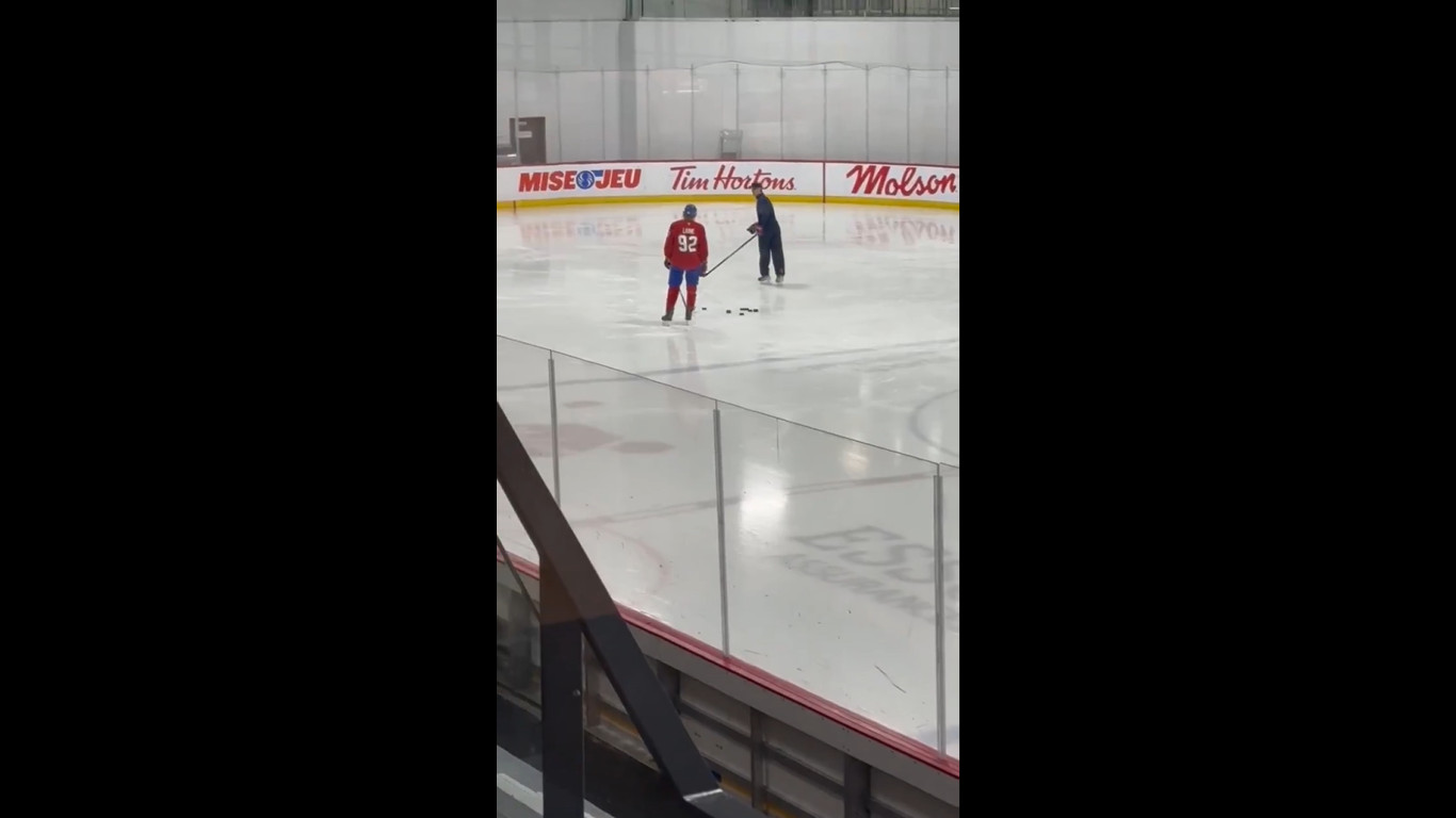In the videos of him, we see him with a member of the Canadiens organization and he's not skating his heart out, either: