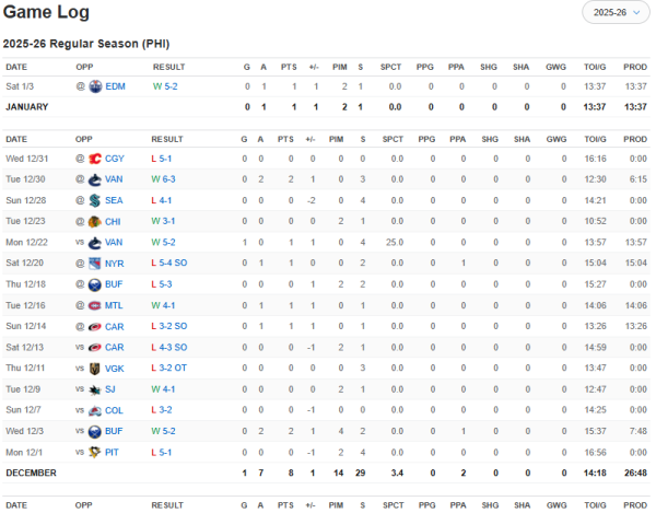 Matvei Michkov has 1 goal in his last 16 games, and it was an empty netter. #LetsGoFlyers