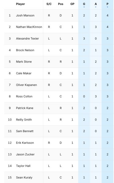 With a four-point performance, Nathan MacKinnon led the league in scoring.