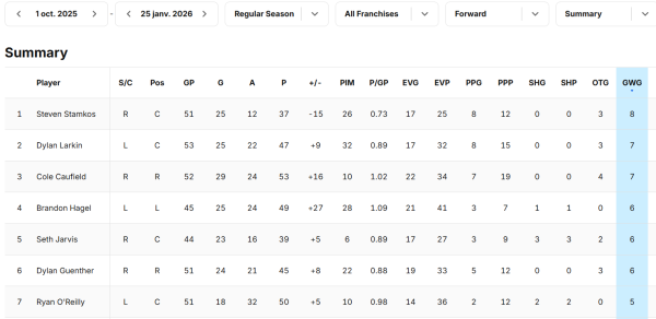 As we know, Caufield has been scoring a lot of winning goals so far this season. At the time of writing, he is tied for 2nd on the list with seven game-winning goals, behind Steven Stamkos, who has eight.