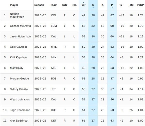 That's definitely better than his 37-goal, 70-point season of 2024-2025.