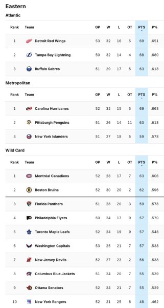 – Eastern and Western standings.