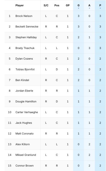 – Last night's top scorers. In addition to Sennecke, Brock Nelson also scored three goals.