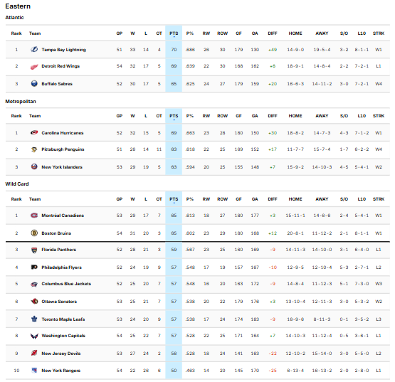 – The standings in the East remain tight: