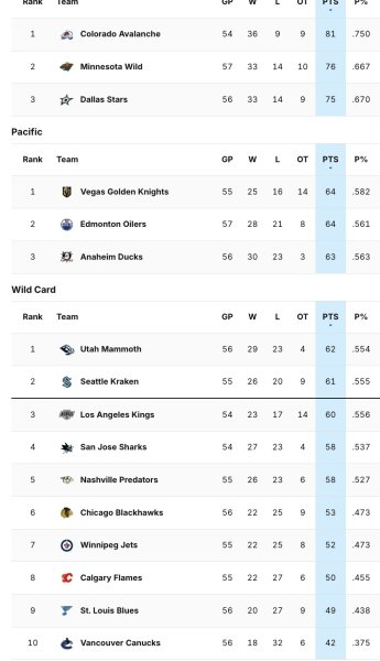 Anaheim is currently third in the Pacific Division.