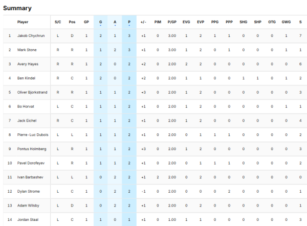 Jack Eichel (1-1—2) recorded his 92nd multi-point game with the @GoldenKnights and passed William Karlsson (91) for the third most in franchise history. #NHLStats