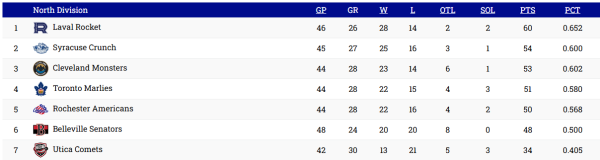 And even though Laval has played a few more games than most of its division rivals, it's still impressive to see the farm team so high in the standings.