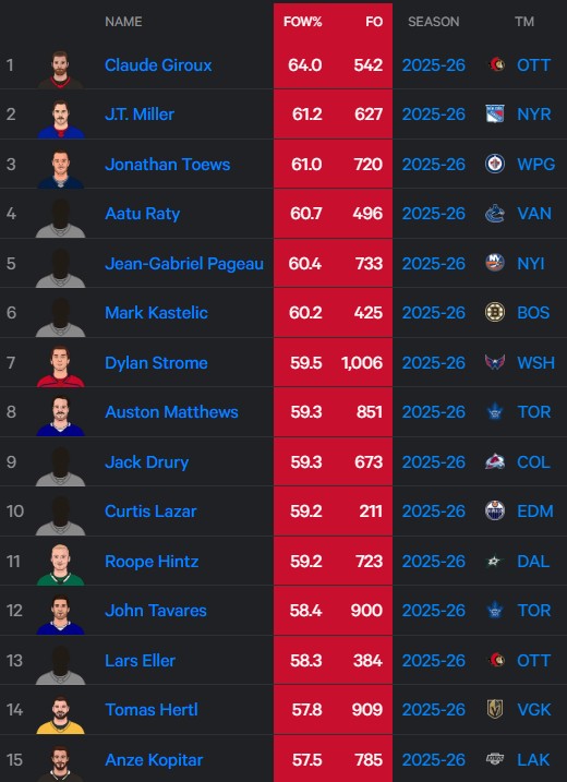 He even ranks ahead of his former teammate Anze Kopitar, who is not exactly a pushover when it comes to winning faceoffs.