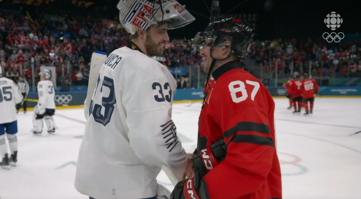 In an interview with his federation, the goalie said that yesterday was his birthday and that he got three gifts: being at the Olympics, playing against Canada, and a Sidney Crosby stick.