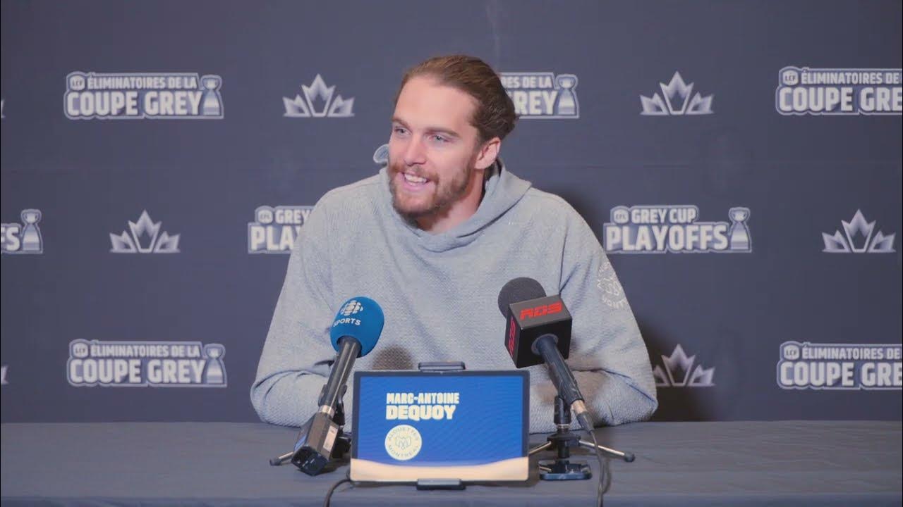 It shows Phil Roy reacting with surprise—and humor—when he discovers the identity of his new recruit. The montage also highlights a defining moment in Dequoy's career: his emotional outburst following the Alouettes' Grey Cup victory in 2023, a moment that left a lasting impression on fans.