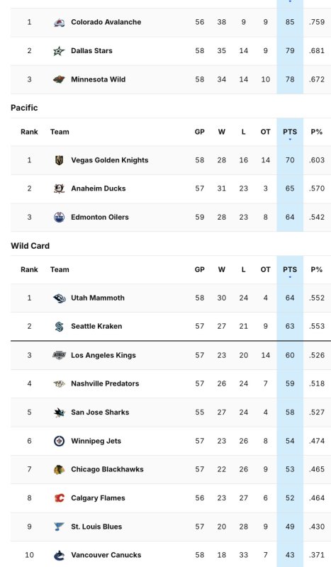 The Avalanche won yesterday, so Dallas couldn't catch up to them a bit, but the club did move ahead of the Wild. The race in the West is tight, too.