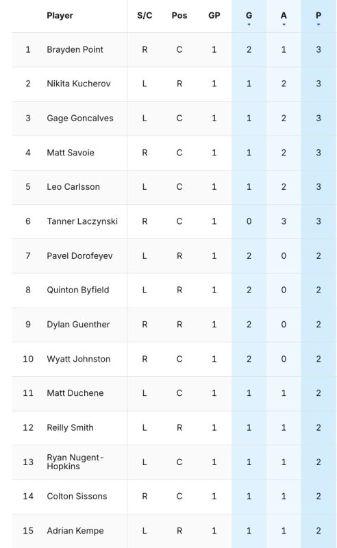 Teammates Brayden Point and Gage Goncalves also had three points.