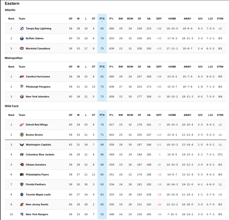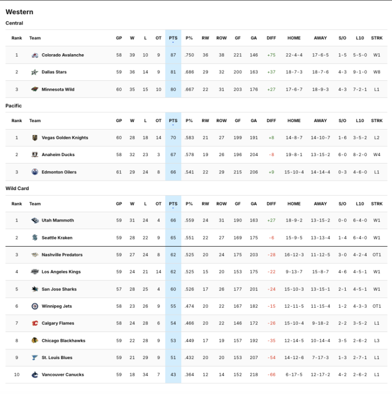 It's so competitive (and close) that the best team in the Pacific, the Golden Knights, wouldn't even make the playoffs if they were in the East.