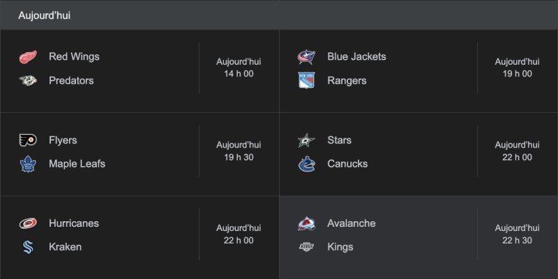 Last night, there were six games in the NHL.