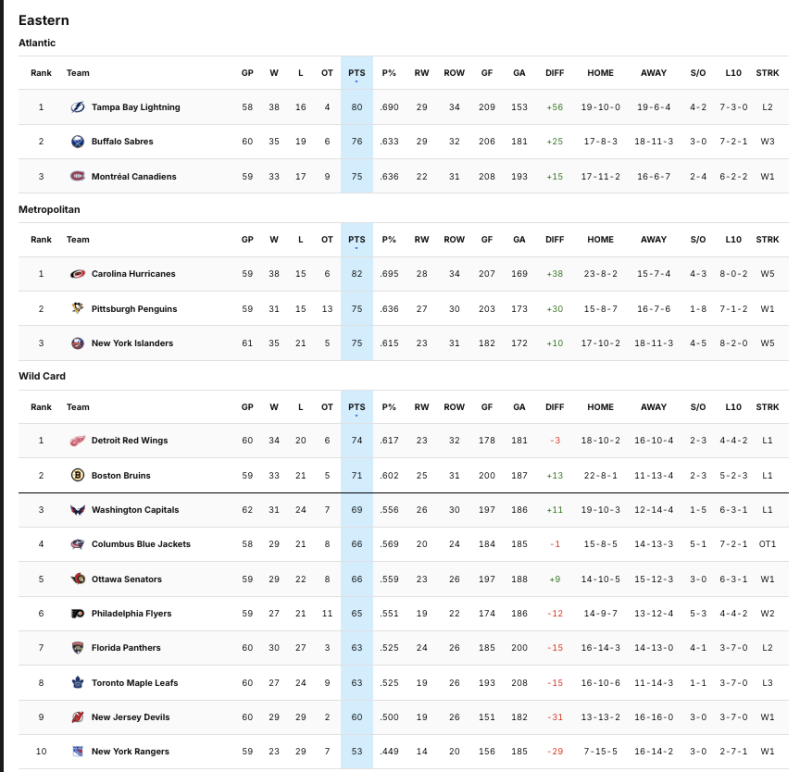 — Eastern Conference standings.