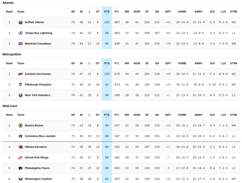The Sabres and the Lightning are the most likely potential opponents in the playoffs, but we shouldn't underestimate the possibility of facing the Bruins or even the Hurricanes.