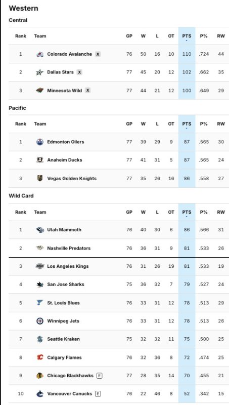 2. The Avalanche fail to secure first place in the Central Division