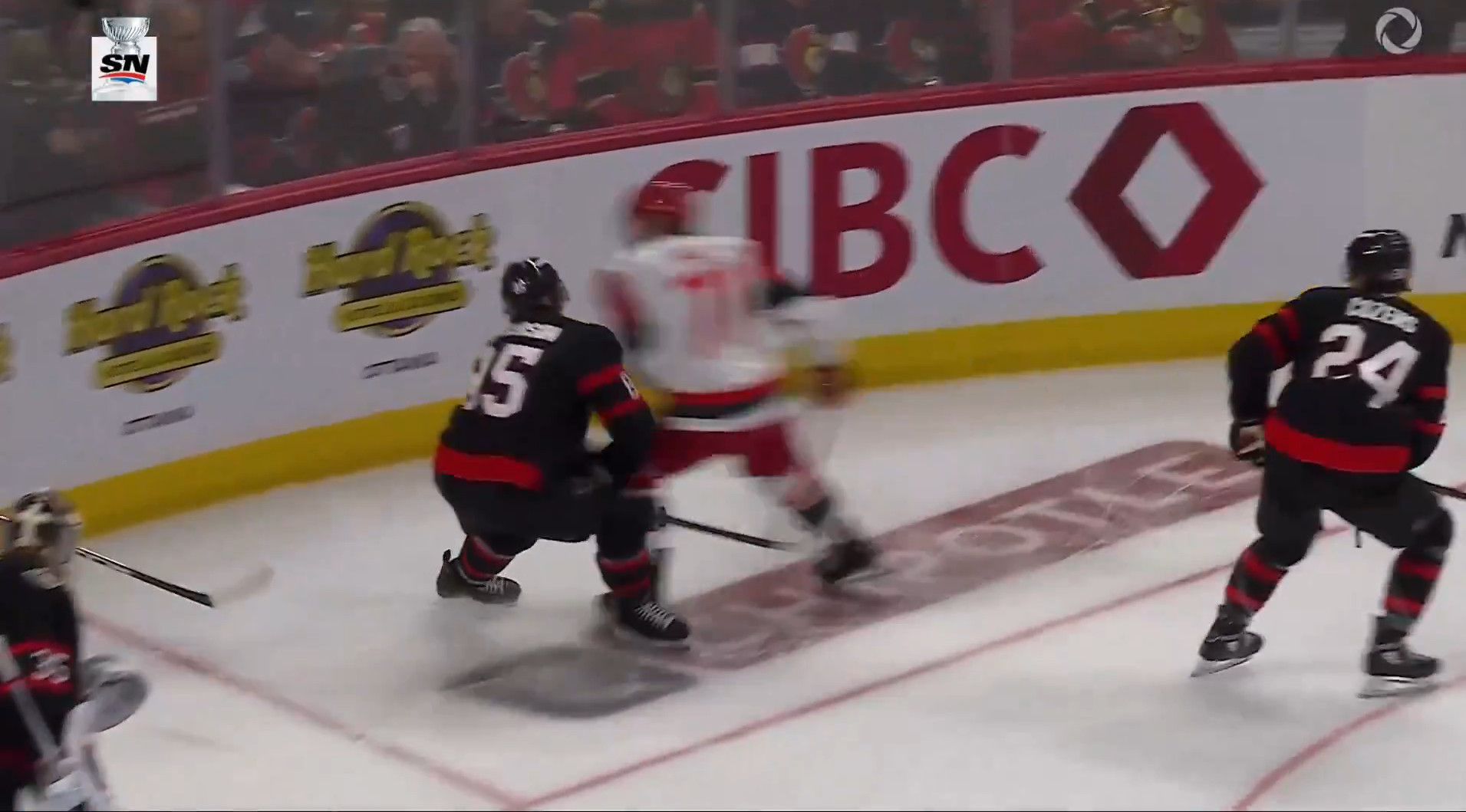 The Canes forward hit Jake Sanderson in the head. The Sens defenseman had to leave the game and never returned to his team's bench afterward. Oh, and he'll even have to miss his team's next game…