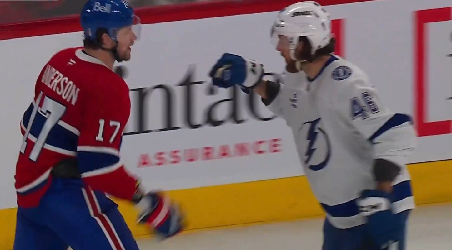 But Anderson didn't fall for Sabourin's trap, whose sole objective is to provoke the Habs' #17.
