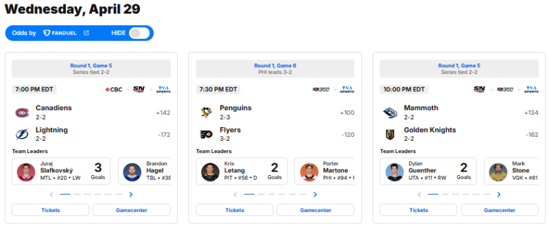 — NHL Public Relations (@NHLPR) April 29, 2026