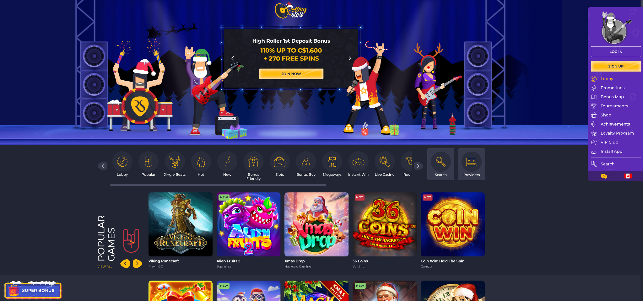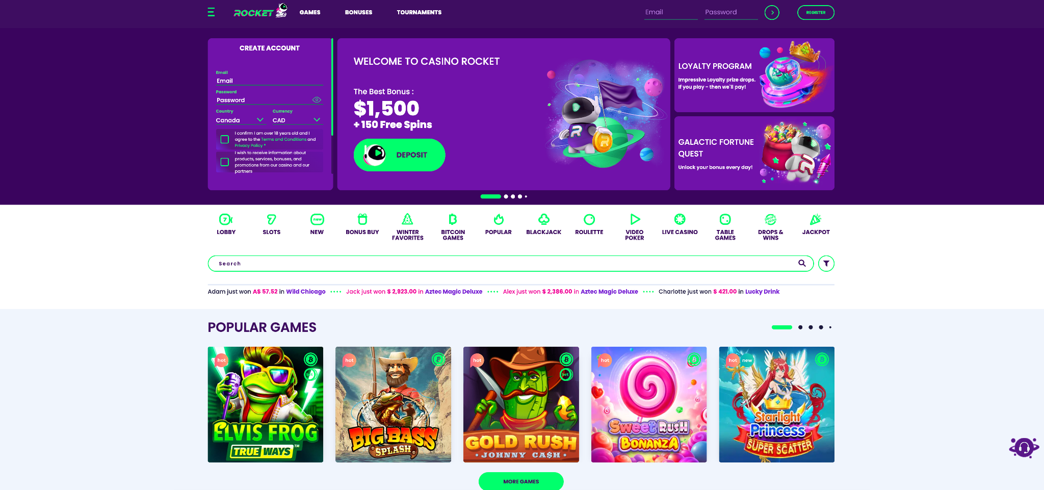 - Welcome Offer: 150 free spins and 200% up to 2,210 CAD;